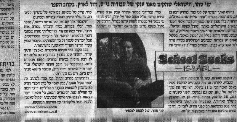 באותה שנה, פנה אלי חבר וסיפר שחבר שהכרנו דרך ה BBS, קני סהר, הקים בארצות הברית אתר אמריקאי להורדת עבודות בשם School Sucks, ושאולי כדאי שאצור איתו קשר. יצרתי קשר עם קני, ויחד הקמנו את סקול סאקס ישראל, הגרסה הישראלית אותו כתבתי וערכתי מהתחלה ועד היום.